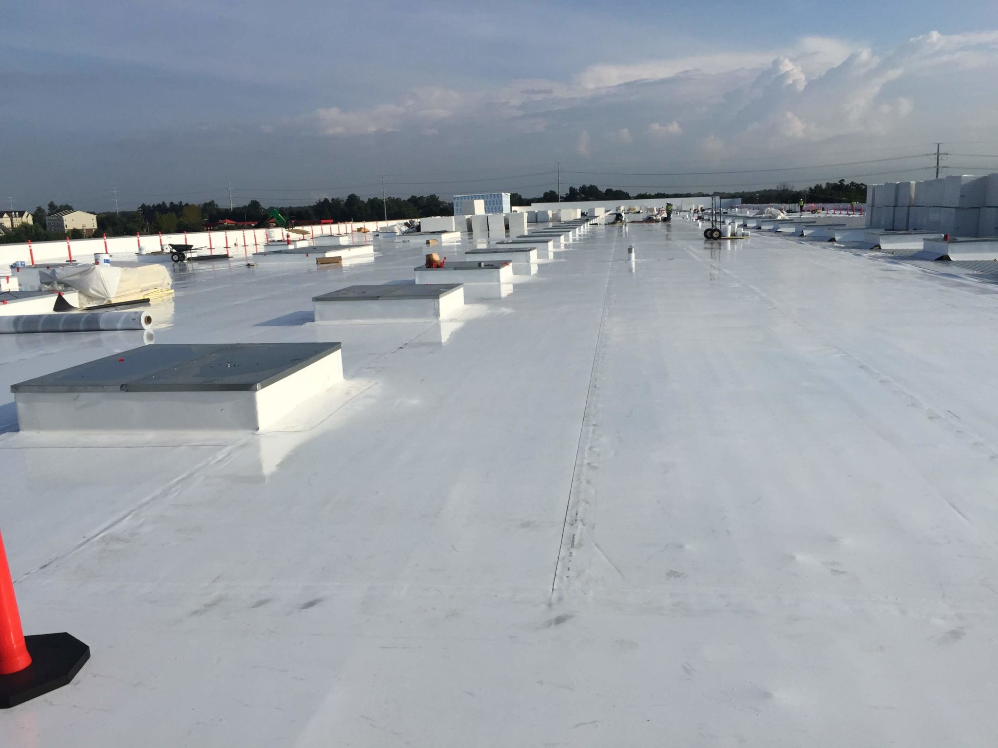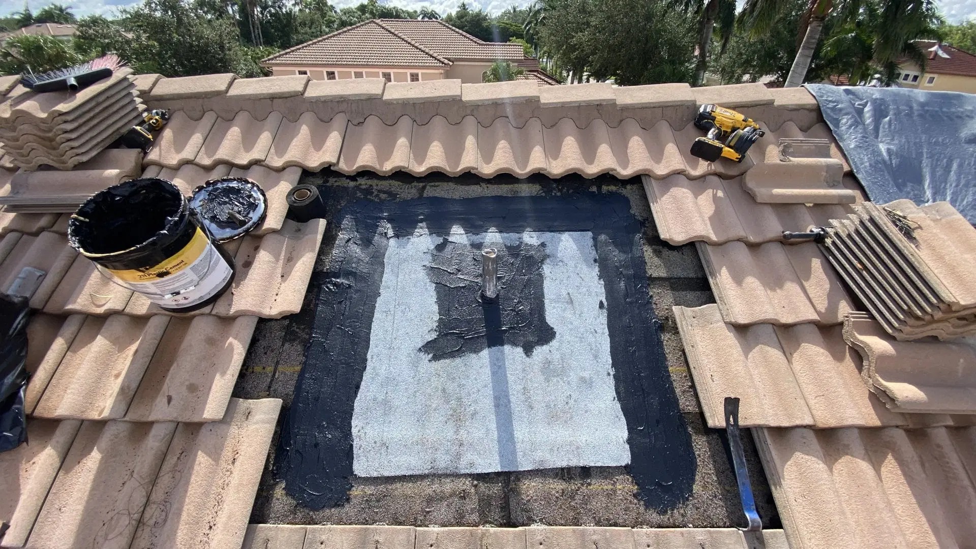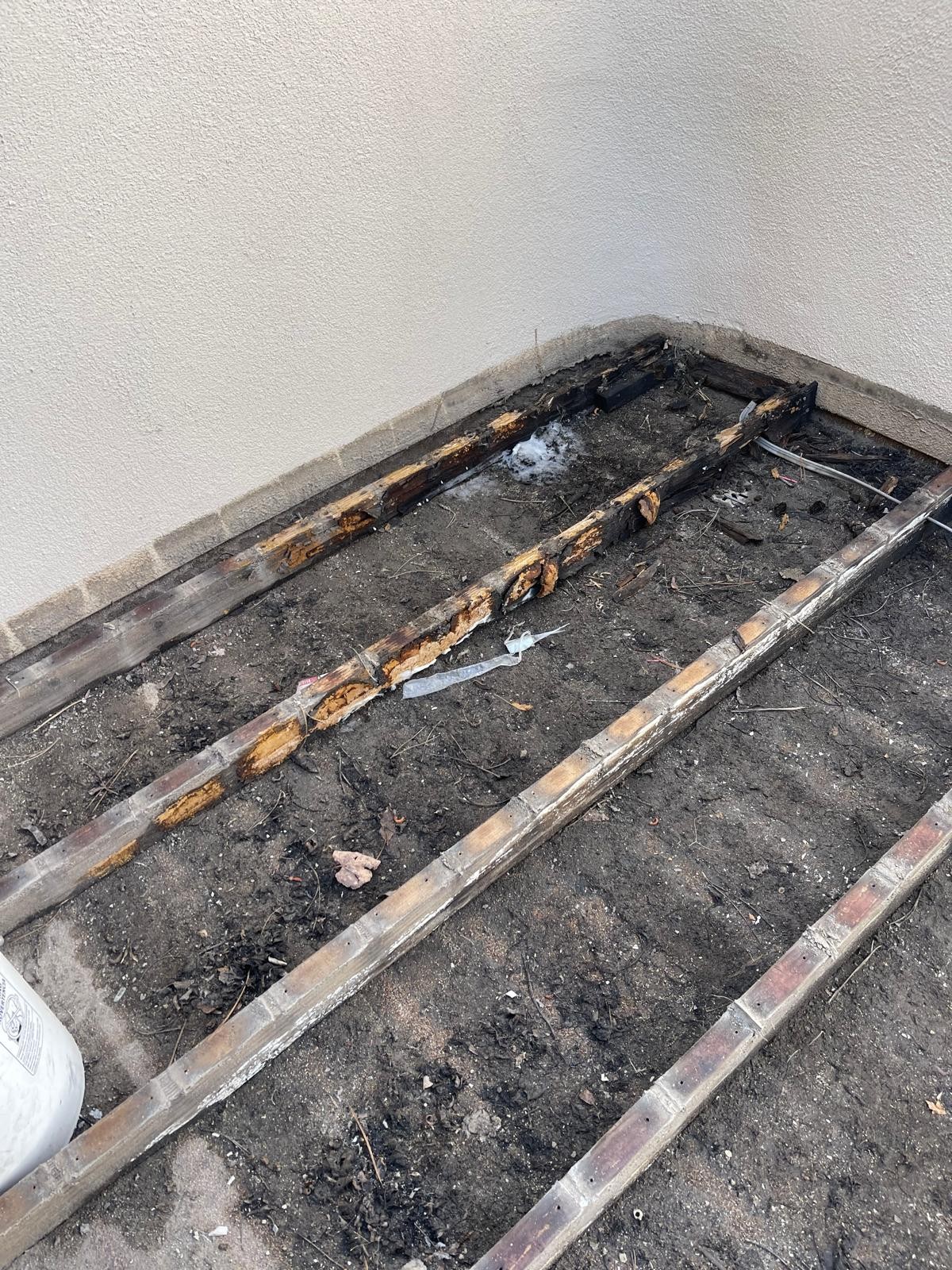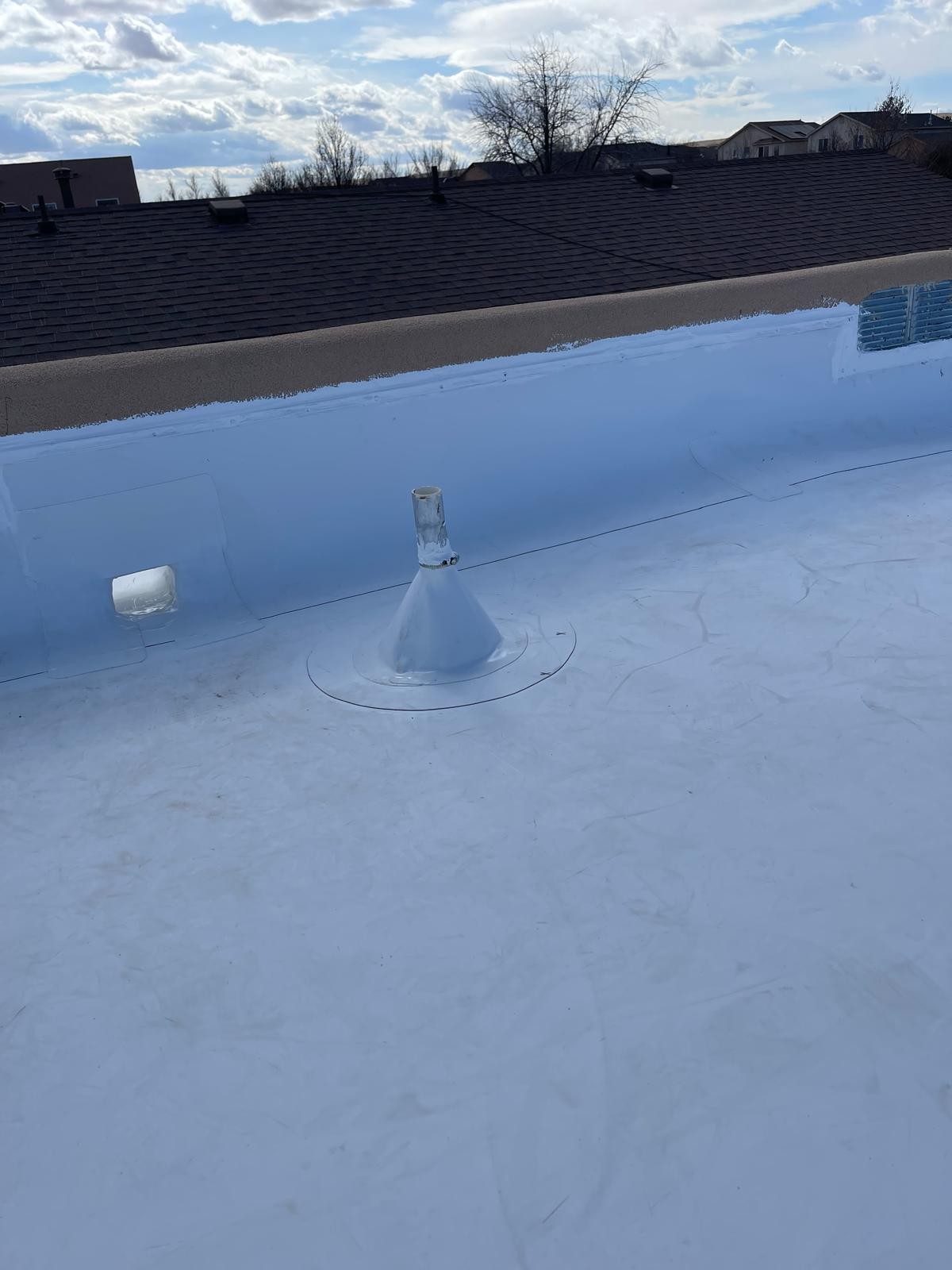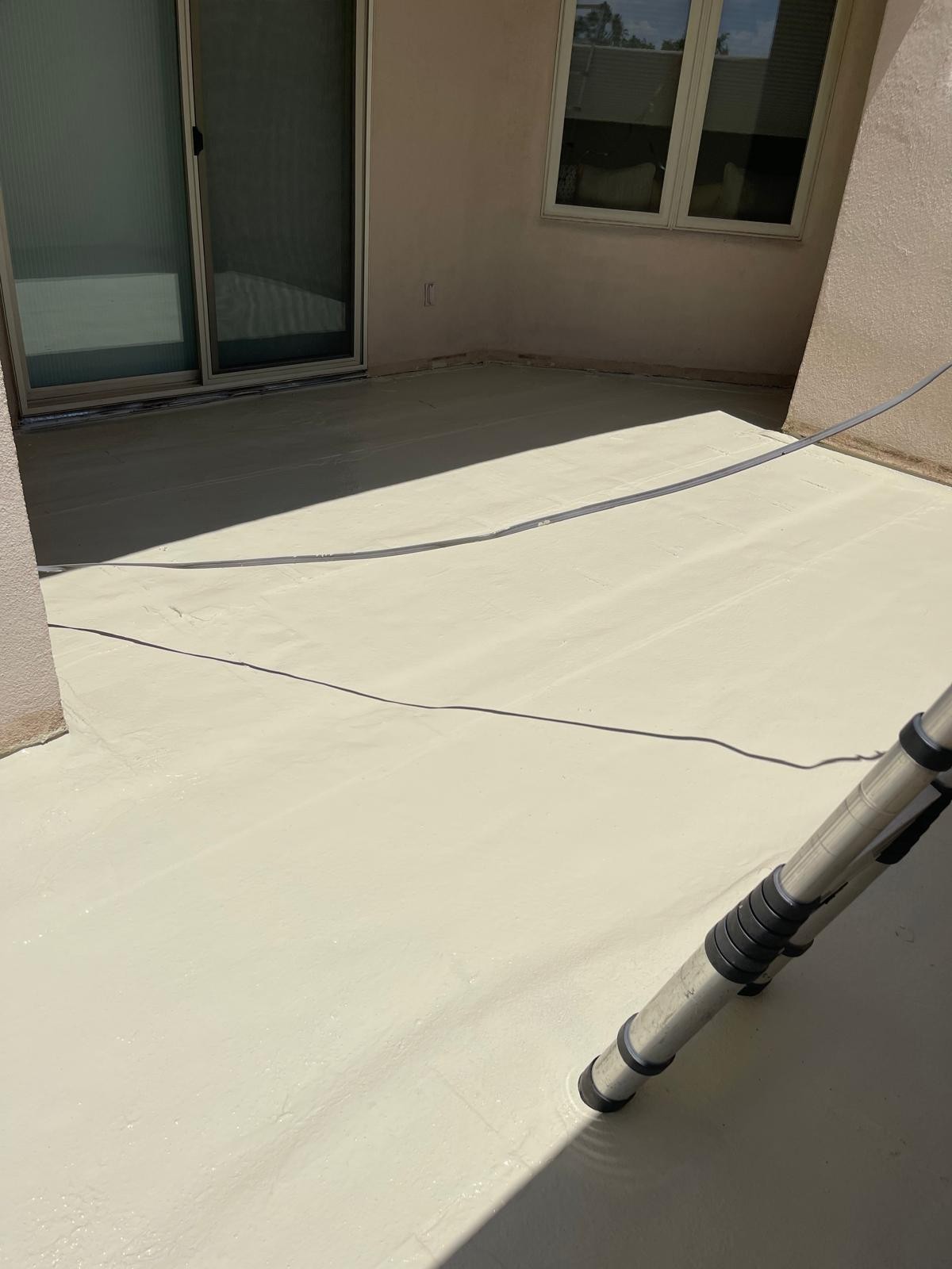 Silicone roof coating applied on a balcony roof, and replaced damaged frame wood